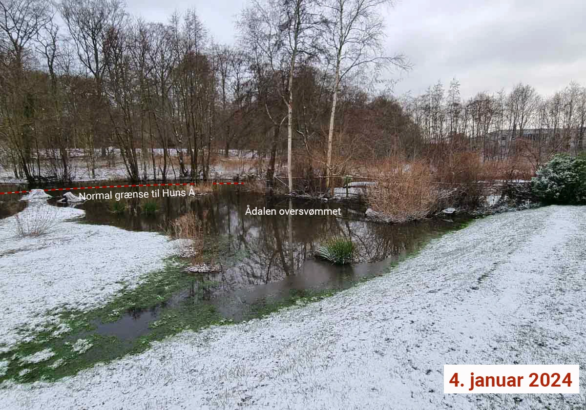 Efter kraftig regn i det sydlige Danmark 3-4. januar 2024, som skabte større oversvømmelser i flere områder af Lolland-Falster, måtte vi også se at udsigten til vandet kom nærmere.